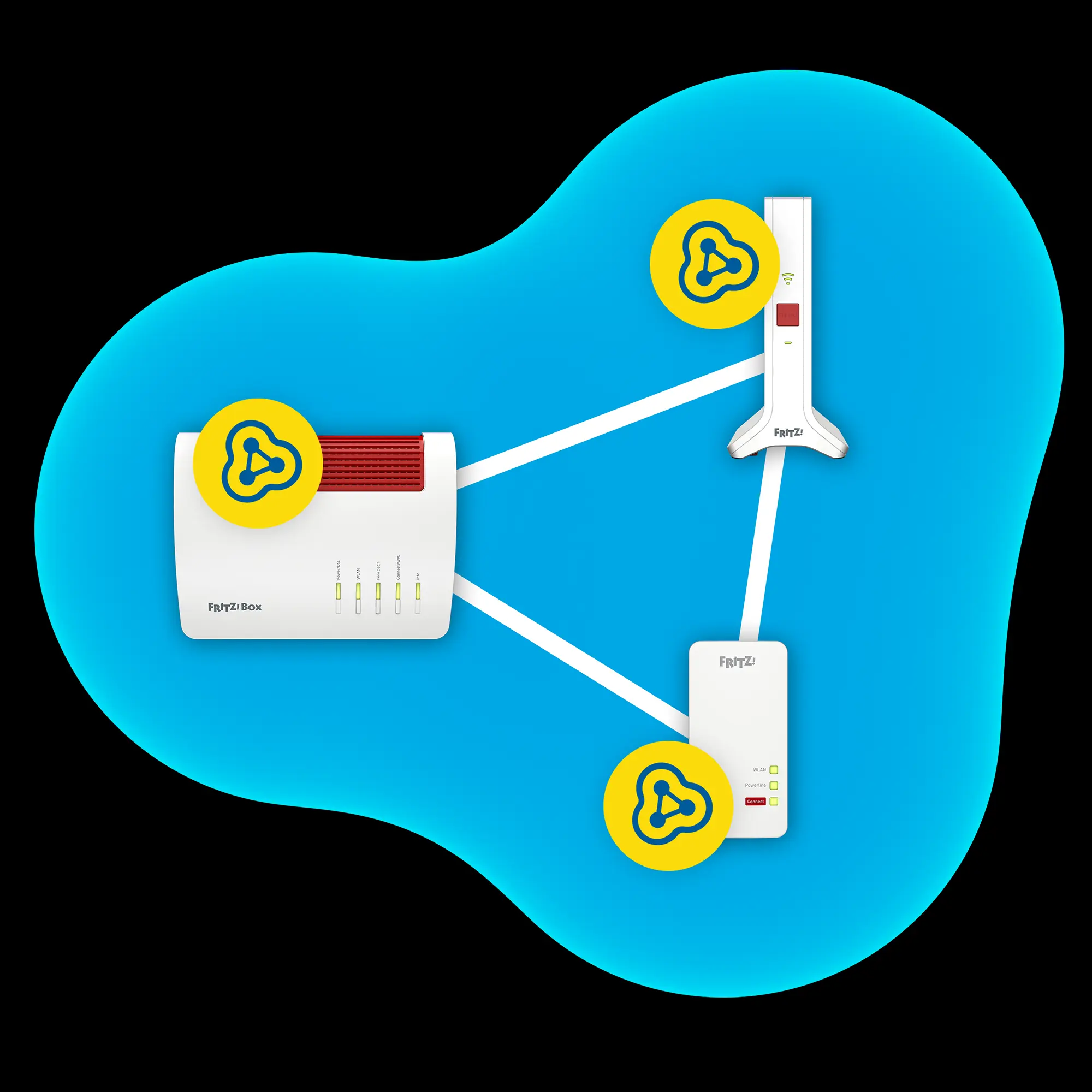 Mesh verbindet die einzelnen WLANs der FRITZ!-Produkte zu einem gemeinsamen WLAN und